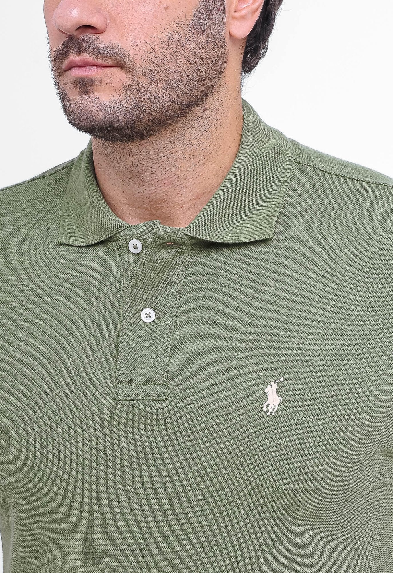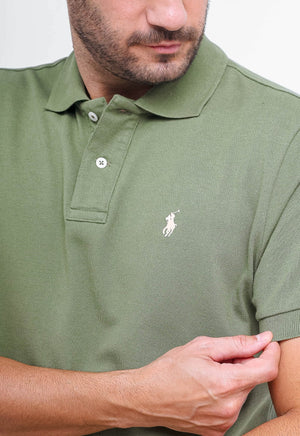 POLO RALPH LAUREN CUSTOM FIT - PONEY BRANCO - VERDE MUSGO