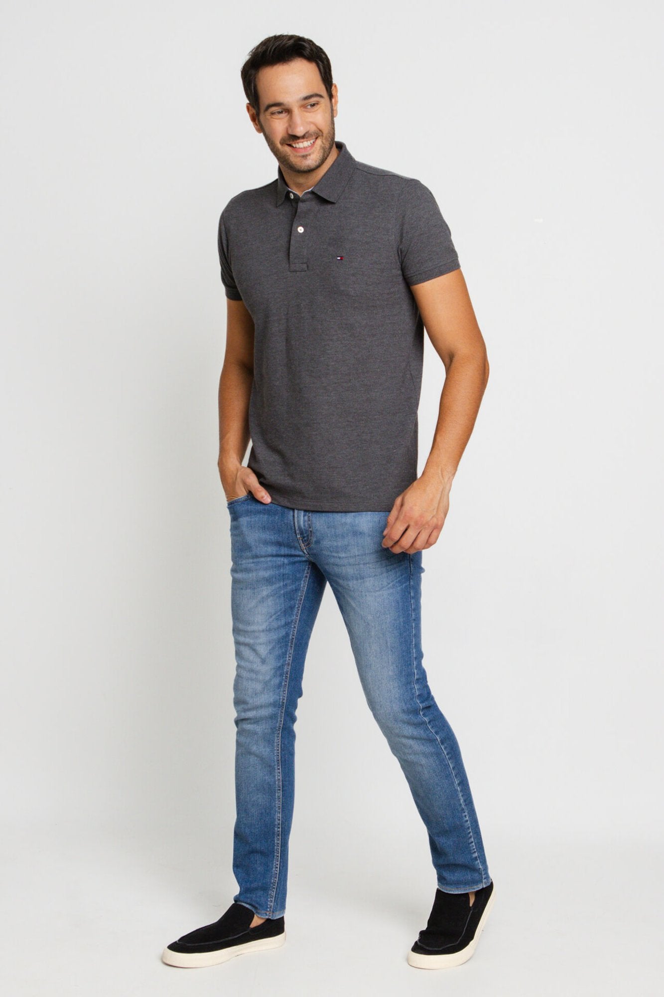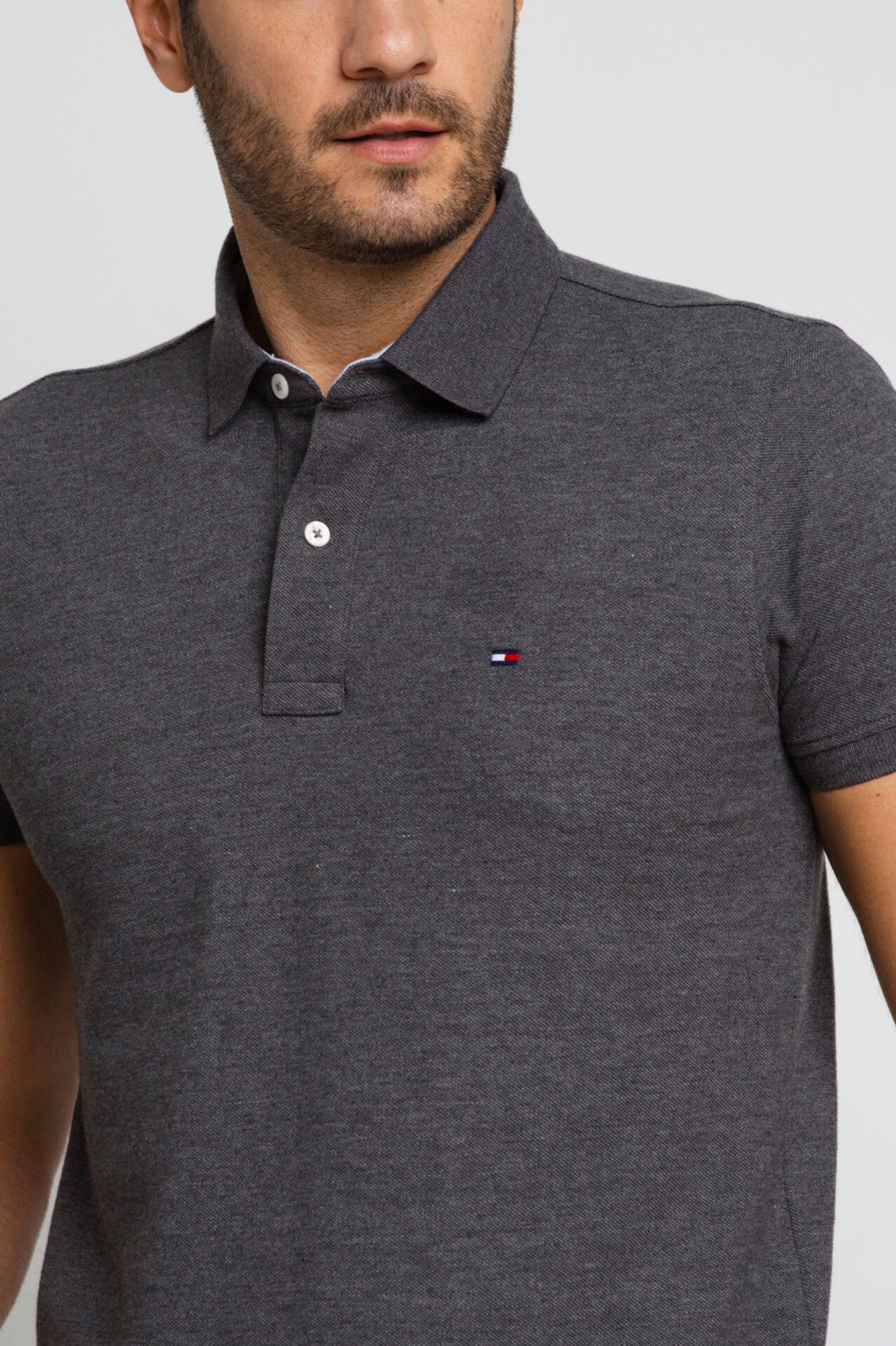 POLO TOMMY HILFIGER CUSTOM FIT - CINZA MESCLA